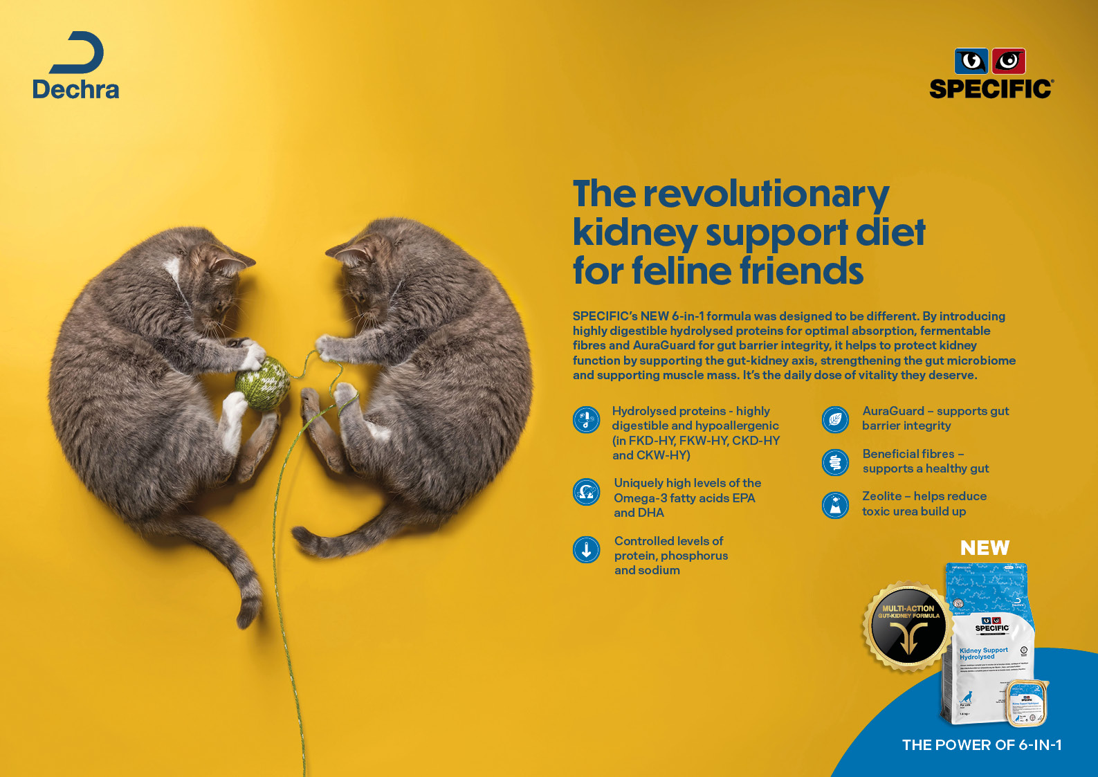 Nya SPECIFIC Kidney Support för katter kan utan risk kombineras med Catney One och Porus One för en trippel effekt för att stödja njurfunktionen hos katter med CKD.