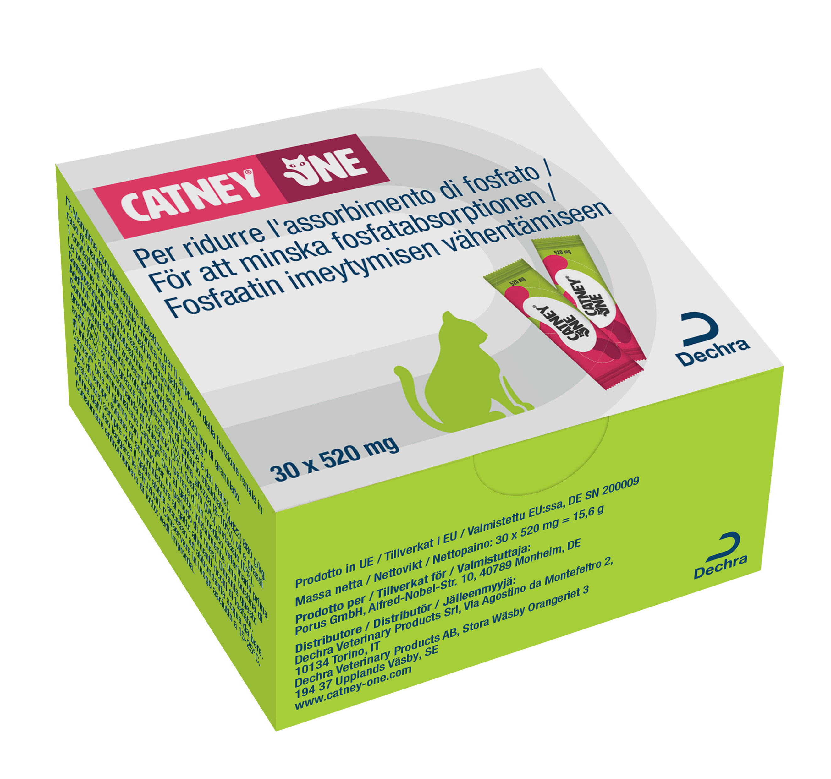 If plasma phosphorus concentrations of cats or dogs with CKD remain too high on a phosphorus restricted diet, phosphorus binders can be used to limit intestinal absorption.42,43 CatneyOne from Dechra is a lanthanum carbonate phosphorus binder. Read more about CatneyOne.