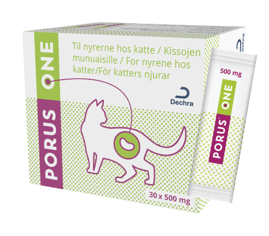 Adsorbenter som kan binda uremiska toxiner och prekursorer i tarmen kan vara fördelaktiga. Porus One för katter från Dechra är en adsorbent som består av Renaltec, en ny förening med mikroporer som binder till uremiska toxinprekursorer och förhindrar att de absorberas i blodet.